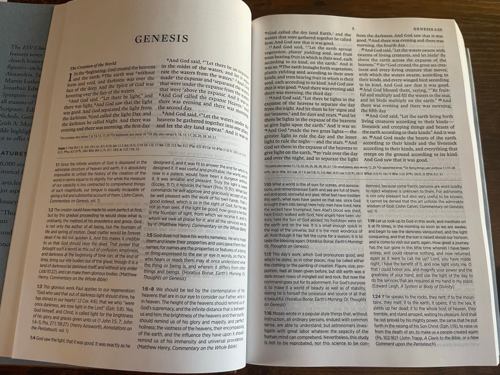 This Study Bible is for those who are wanting to understand the Bible through the lens of the history of the Church. This would be a very helpful study Bible for you because of the commentary on various passages from those who have gone before us. This work also has sections titled This Passage in History throughout the notes. The ESV Church History Study Bible also contains a list of informative articles near the back; they are: History of Biblical Interpretation and Exegesis, History of Bible Translation, History of Biblical Preaching, The Patristic Era, The Middle Ages, The Bible and the Reformation, The Modern Age, Reading the Bible in a Critical Age, Creeds and Confessions, The Devotional Use of Scripture, The Role of Tradition in Protestantism and Roman Catholicism, and The Bible and the Global Church. Like many ESV Study Bibles, this ESV Study Bible contains a helpful concordance and a Bible reading plan. I think Crossway’s Bible reading plans are some of the best because of the way they format the plan and leave the reader enough space to mark it off for multiple years of use. This Bible has nice paper and good font, but there is not adequate room for taking a lot of notes. If note taking is how you most like to utilize your personal Bible, I would suggest a journaling Bible or wide margin. This Bible is a similar concept to the Ancient Faith Study Bible that the CSB produced, and it contains an author index in the back as well. A large difference between the ESV Church History Study Bible and the Ancient Faith Study Bible is the period of time for study notes at the bottom. The Ancient Faith Study Bible is looking at the early church for study notes and this ESV Church History Study Bible has notes from leaders throughout history. If you are interested in this Study Bible, it is one I would recommend! They are available in Hardback, Trutone, and Genuine Leather.